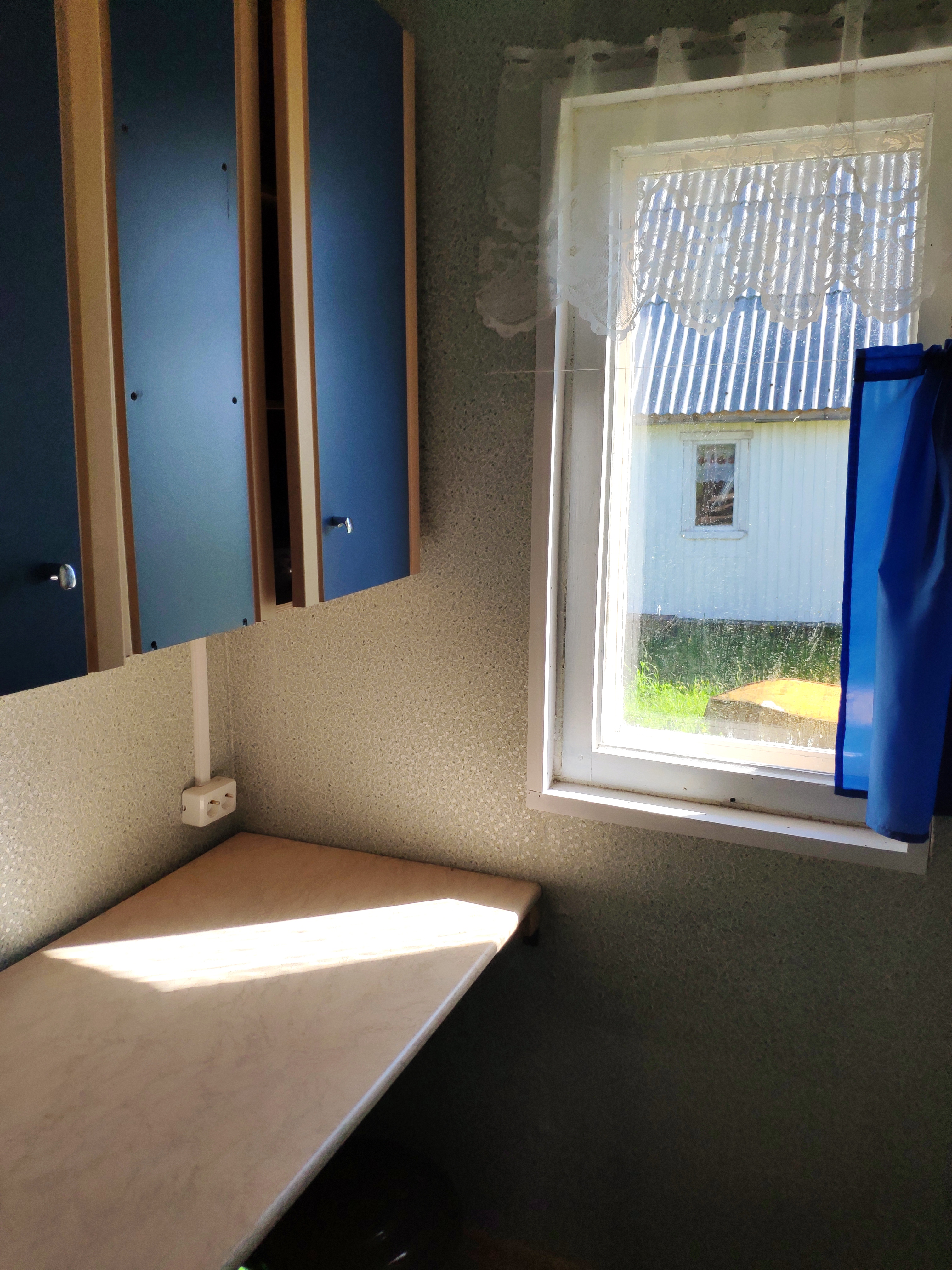 -прихожая, в которой размещен холодильник, плита, микроволновка и деревенская умывальня.